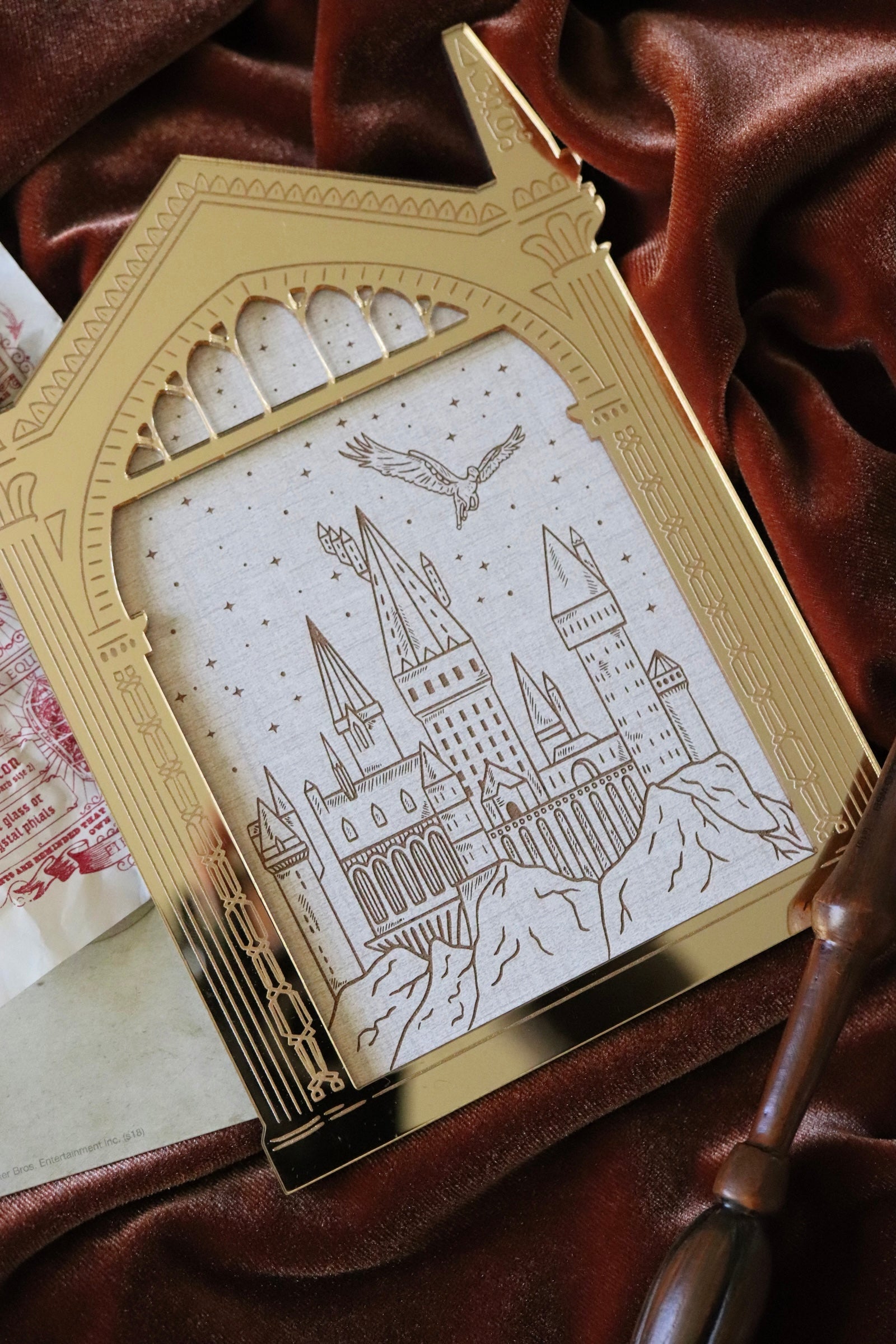 ✦Made of engraved linen finish wood veneer with gold mirror acrylic frame