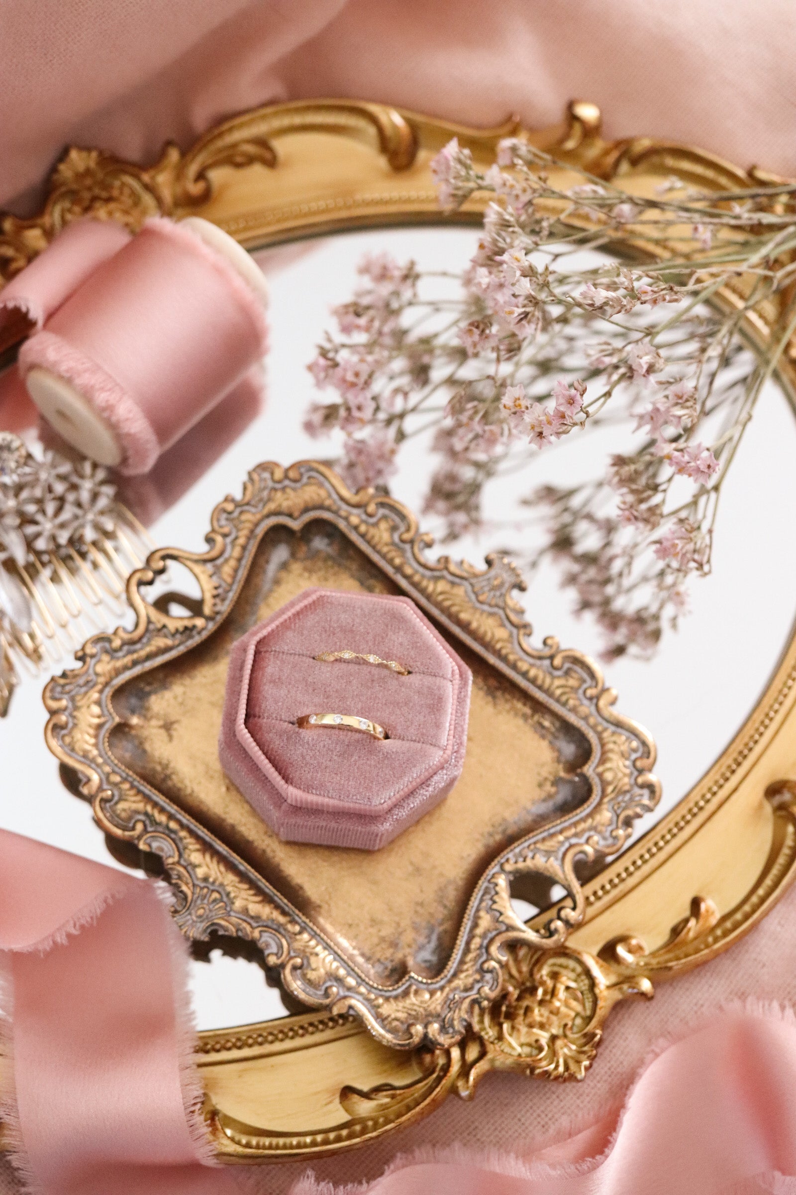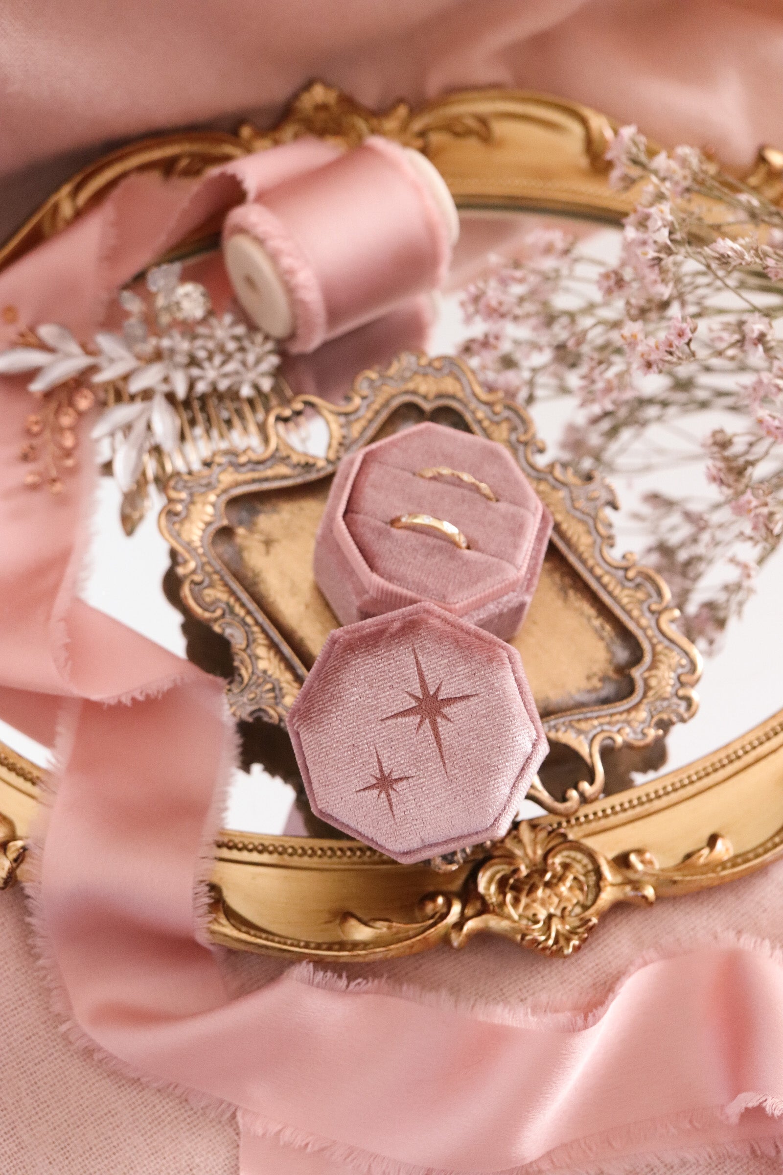 ✦Engraved dark pink ribbed velvet, light blue suede, dark blue suede, pink velvet, lilac velvet, or beige cream velvet ring box